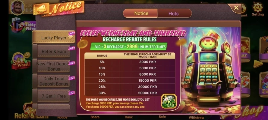 Referral Program: Invite friends to join PK 555 and earn commissions on their deposits and gameplay.